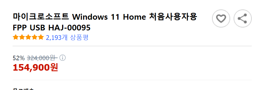 이 글을 작성하는 2025년 3월 15일 현재 기준으로 라이선스를 준수한 정품키를 포함한 가격은 154,900 원이네요.