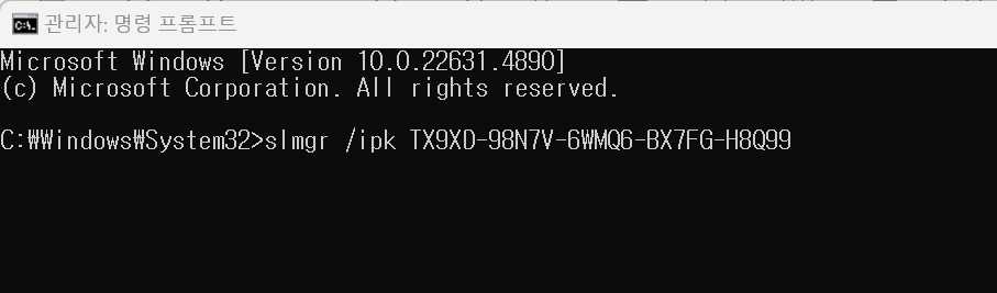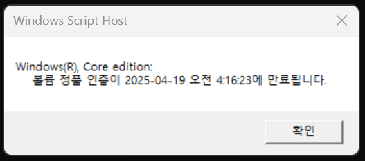 확인 누르고, slmgr -xpr 엔터