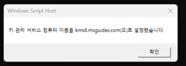 확인 누르고, slmgr /skms kms8.msguides.com 입력 엔터 치시고